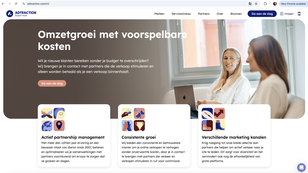 Wil je producten van Coolblue promoten, of van Albert Heijn of Philips meld je dan aan bij Partnerize. In Nederland is het aanbod aan campagnes vaak kleiner dan bij grote netwerken zoals Awin of Daisycon. Veel programma’s zijn bovendien internationaal gericht. Het platform staat bekend om zijn uitgebreide tracking en rapportages. Affiliates kunnen precies zien hoe campagnes presteren, welke partners verkopen genereren en hoe de klantreis verloopt.