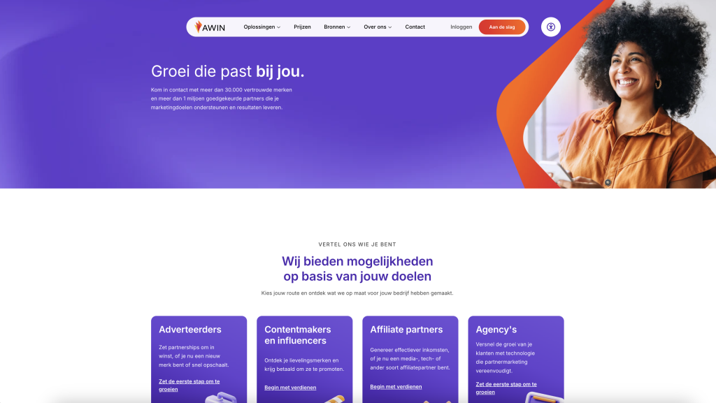 Awin is één van de grootste affiliate netwerken ter wereld en ook in Nederland en België enorm populair. Het netwerk heeft tienduizenden adverteerders in meer dan 180 landen en biedt campagnes in vrijwel iedere niche, zoals mode, elektronica, reizen en verzekeringen. Je vindt hier op het moment van schrijven grote merken zoals Nike, Decathlon, Action en Booking.