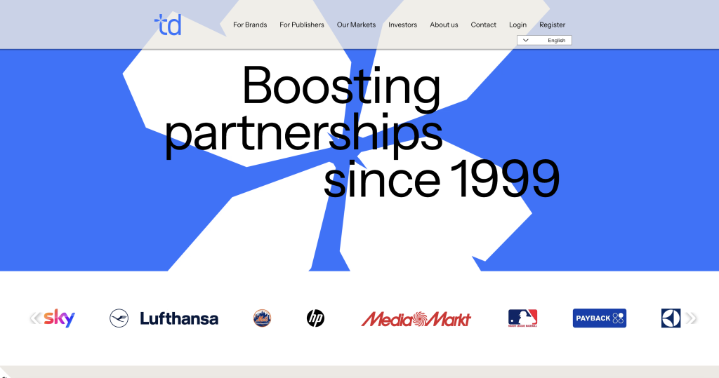Tradedoubler is een internationaal affiliate netwerk dat al sinds 1999 actief is. Het platform verbindt adverteerders met publishers die producten of diensten willen promoten via websites, blogs, social media of vergelijkingssites. Als affiliate kun je je aanmelden bij verschillende campagnes en verdien je een commissie wanneer een bezoeker via jouw link een aankoop doet of een lead genereert. Binnen Tradedoubler vind je campagnes uit uiteenlopende sectoren zoals retail, telecom, finance, travel en abonnementendiensten. Veel bekende merken gebruiken het netwerk om hun affiliate marketingprogramma te beheren. Een van de bekendere merken die aangesloten is bij Tradedoubler en waar veel affiliates gebruik van maken is het affiliate programma van de Mediamarkt.