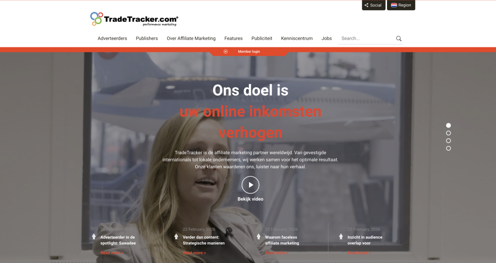 TradeTracker is een van de grootste en bekendste affiliate netwerken in Europa en heeft ook in Nederland en België een sterke positie. Het platform brengt adverteerders en publishers samen en maakt het mogelijk om producten en diensten te promoten in ruil voor een commissie per verkoop, lead of klik.